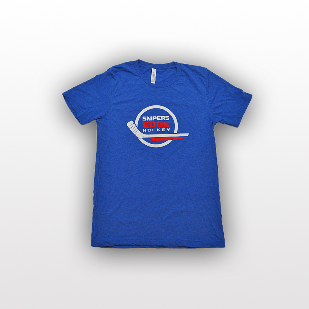 The Snipers Edge retro-style hockey logo t-shirt features an ultra-comfortable tri-blend material, and is sure to be the first one you grab from the drawer for wearing to and from the rink, working on your game at home, or on the couch watching hockey.