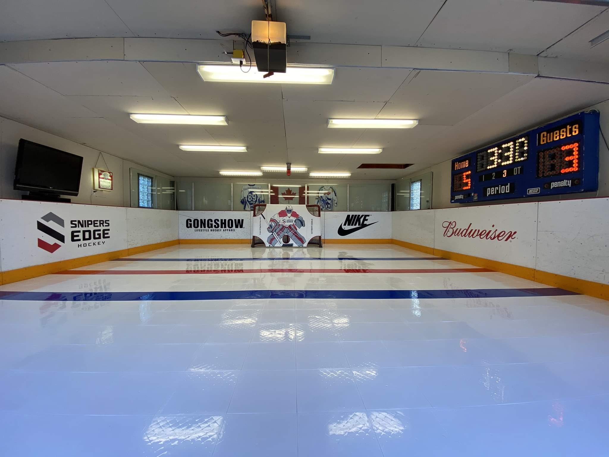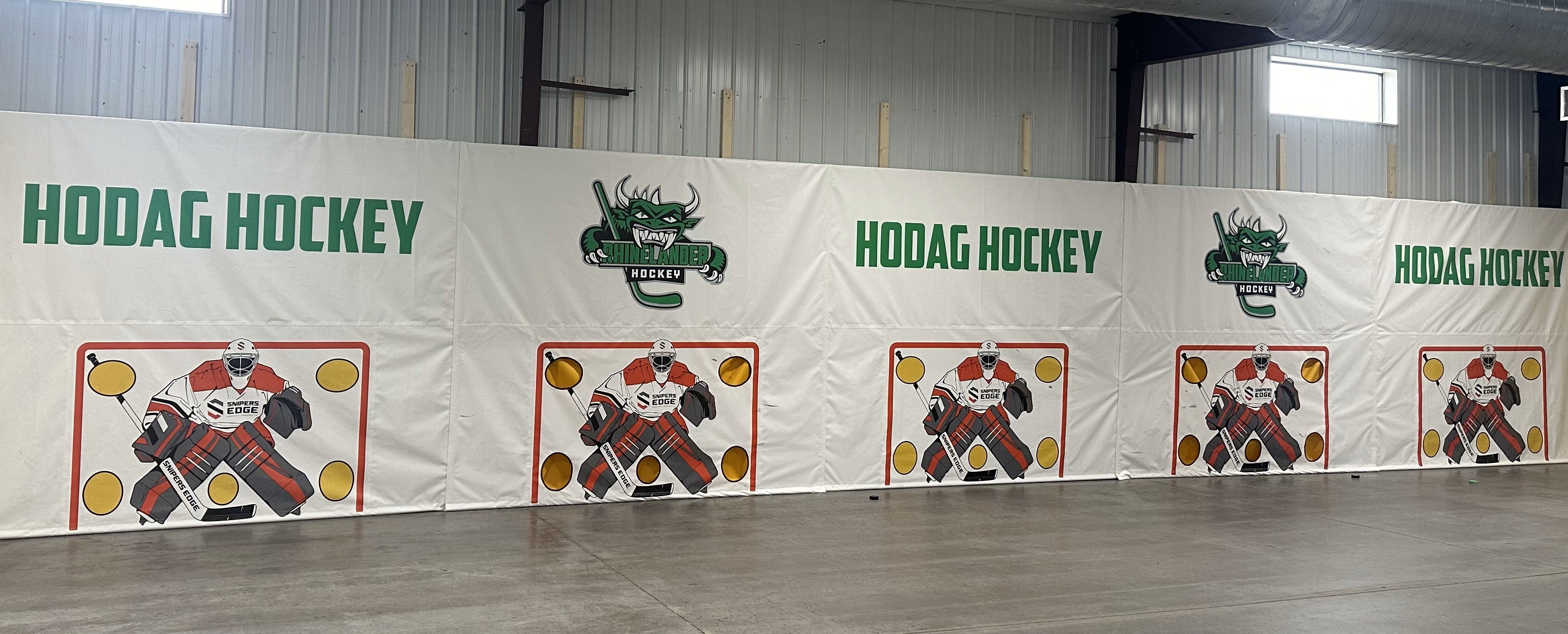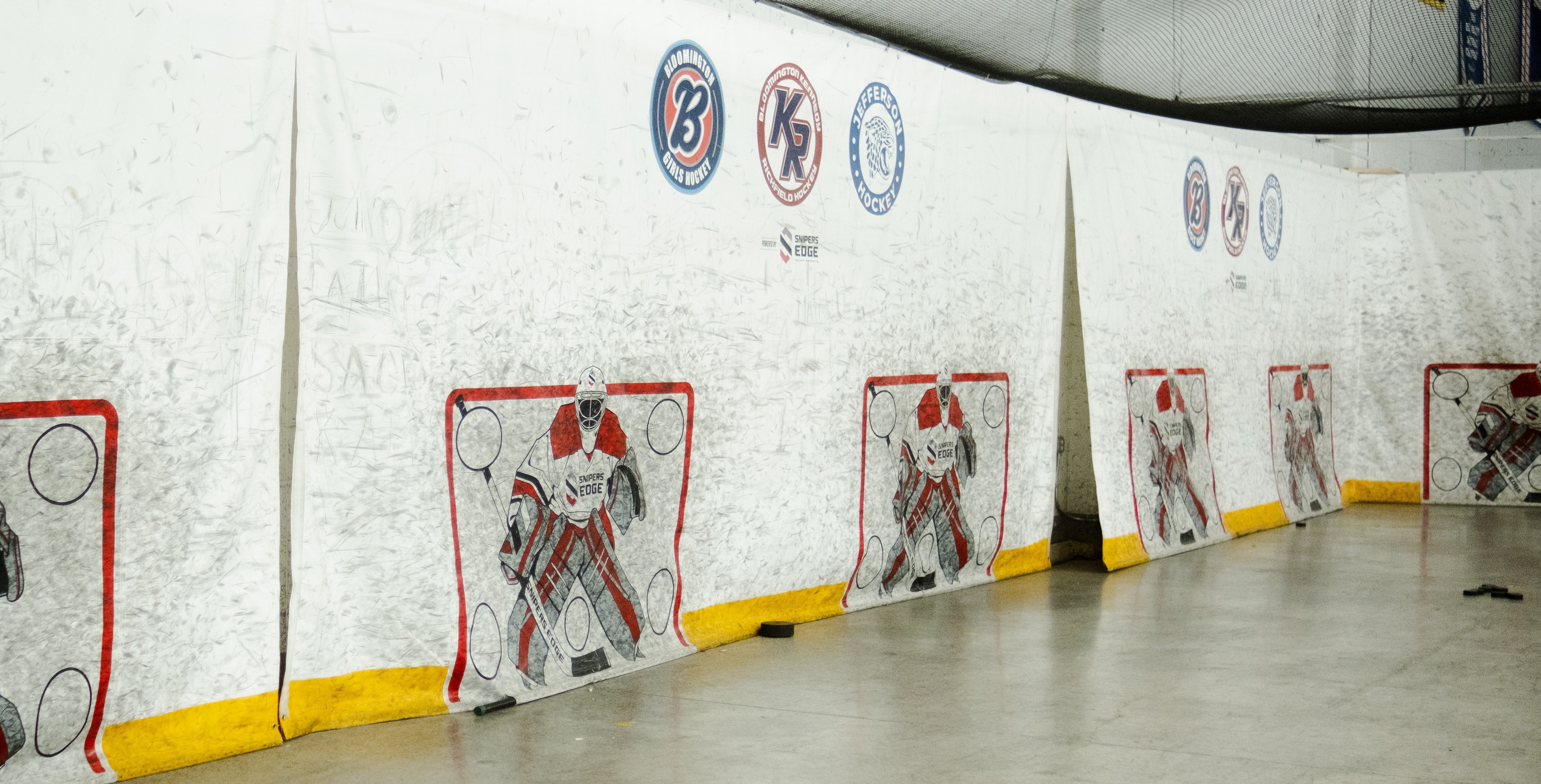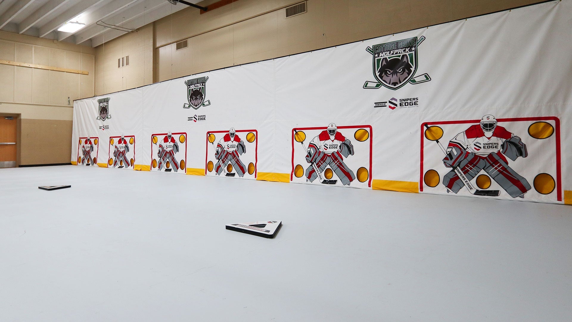 Sniper's Edge Hockey has partnered with hockey associations, training professionals, teams, and commercial customers to create truly remarkable spaces that your athletes will love. We can create custom shooting tarps of any size (height or width), with custom logos or colors, custom-sized synthetic ice configurations, and pair with flooring or other great Snipers products. Need boards or netting? We can help source those too.