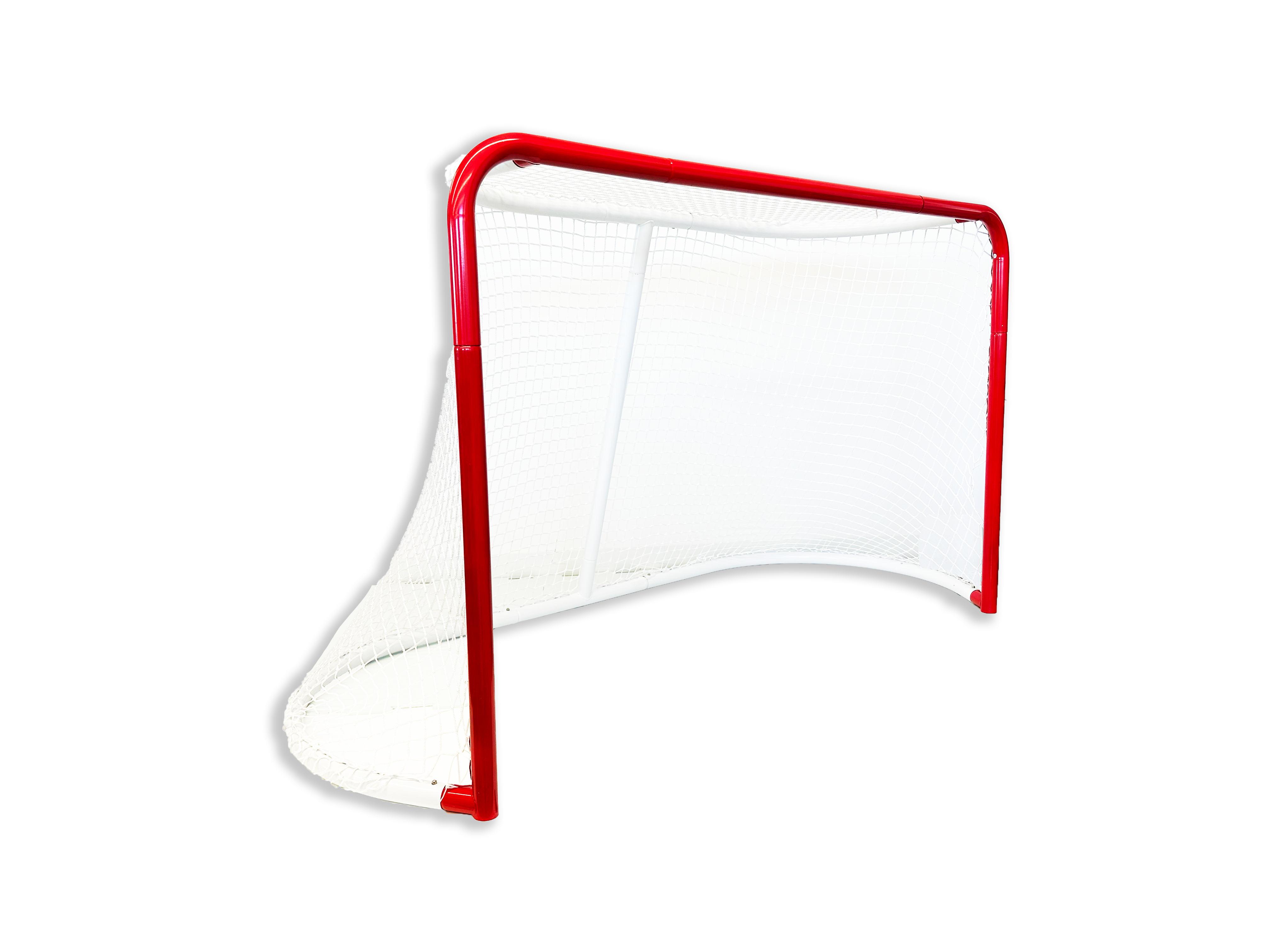 Get outside this winter and train with the Backyard Goal by Snipers Edge. Perfect for the driveway, backyard, or anywhere you want to put pucks on net. This regulation sized net (4' x 6' or 122cm x 183cm) is constructed of a steel frame that snaps together in seconds and durable enough to withstand shots without denting, yet light enough to carry from garage or shed to wherever you want to shoot. The netting strength is ideal for youth players still developing their shots, and takes some set-up time to weave and connect properly, but before long your player will be outside ripping shots while improving power, accuracy, and release.