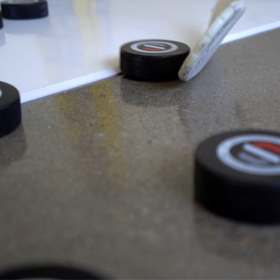 - Slick smooth surface allows players to practice shooting, stickhandling or passing anywhere