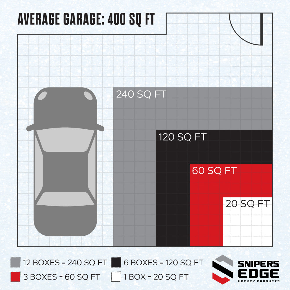 For reference, an average 2-car garage is 400-600 SF. So if you're looking for tiles to occupy a car stall in the garage training area, you might want ~200SF...or 10 boxes.