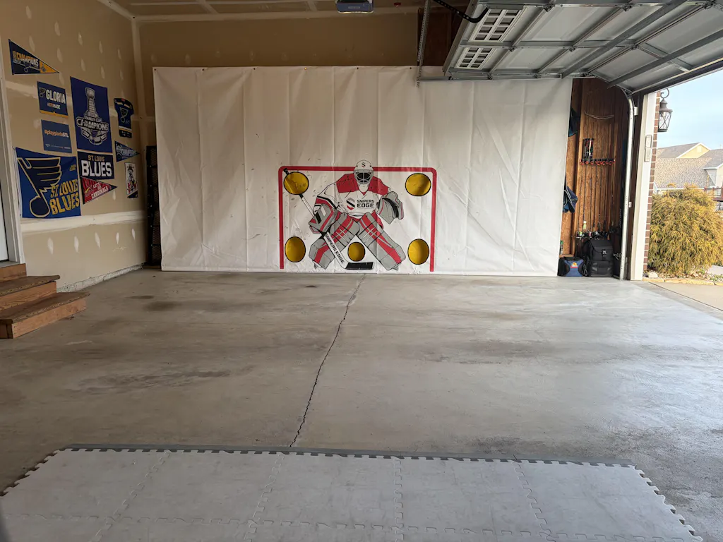 The Shooting Tarp is our cornerstone product, and prerequisite for any hockey training space! Made from heavy-duty, UV coated vinyl, the shooting tarp can be used indoors or outdoors, provides excellent target practice, built to be easy to retrieve pucks, and can also protect your walls, windows, and garage doors! Available in two different sizes (8' H x 16' W or 7' H x 16' W), depending on your ceiling heights. Play a game of Around the World, PIG, Follow the Leader, Rapid Fire, or create your own. Sure to last for the 50,000 shots that are required for you to make it to the pros!